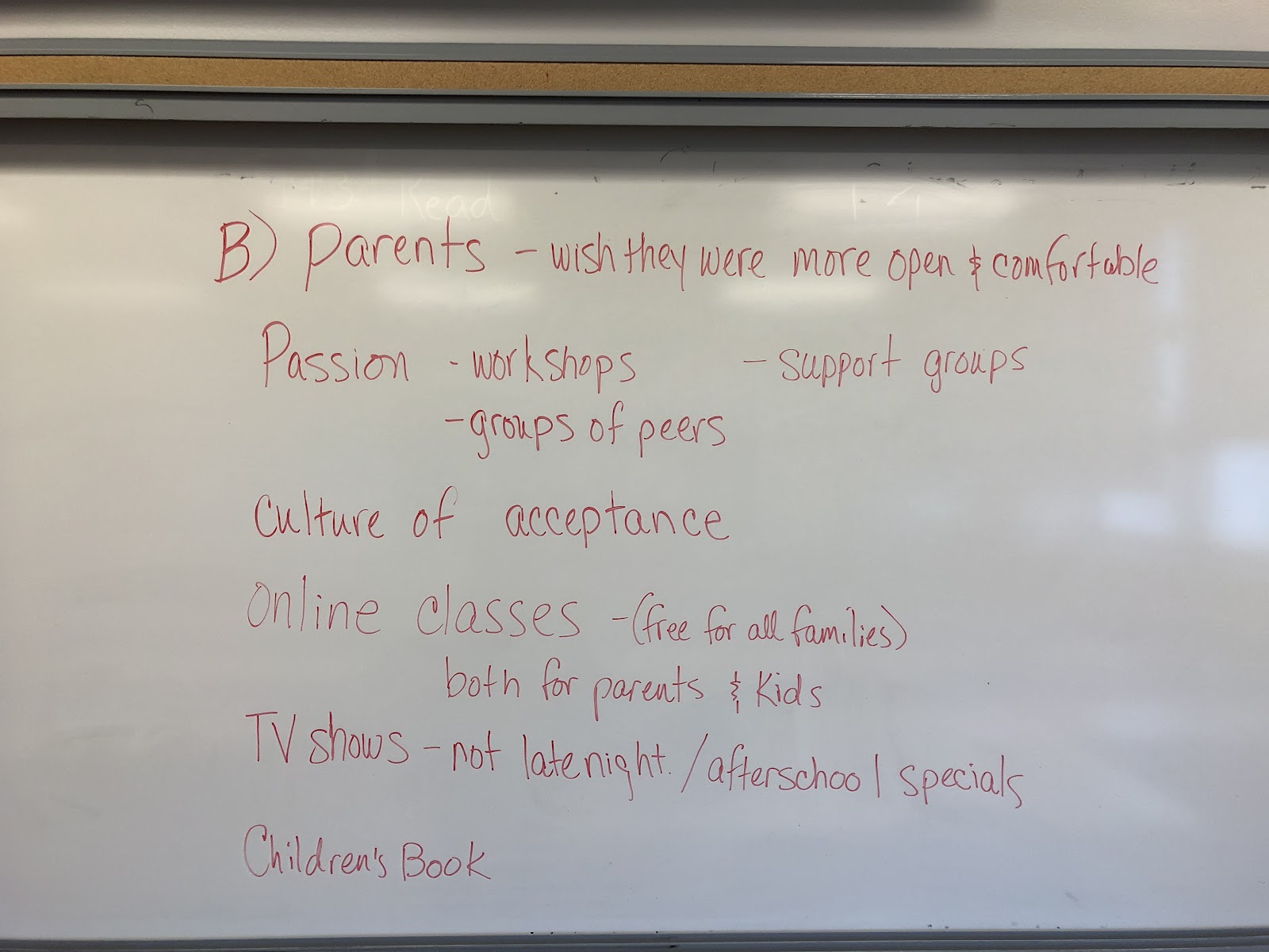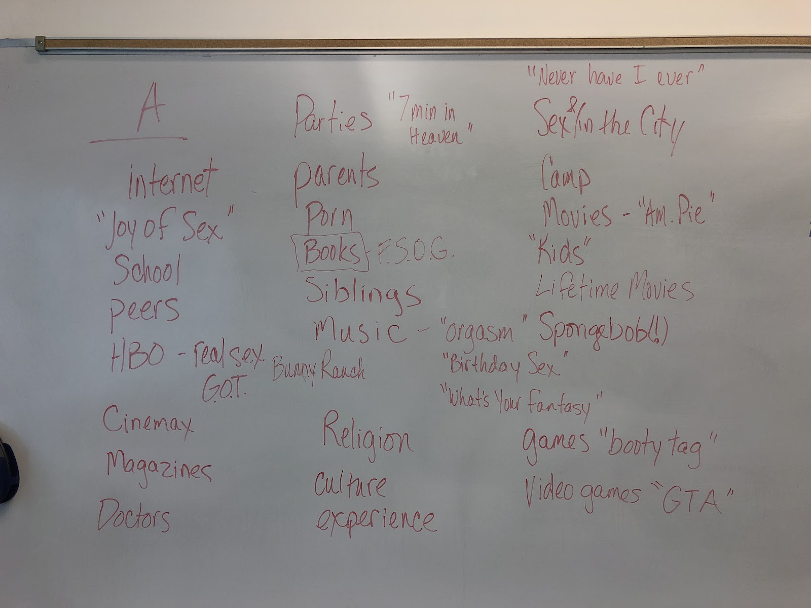 When I asked my college students Question B, the students generally thought this was a tougher question, but without any prompting or leading on my part, both groups of students said they wish they got their sex ed information from their parents. When I asked them to “tell me more,” one student shared a “wish they were more open and comfortable” talking about sex. It’s a tough topic. We aren’t supposed to talk about it, and yet we’re supposed to know everything about it.